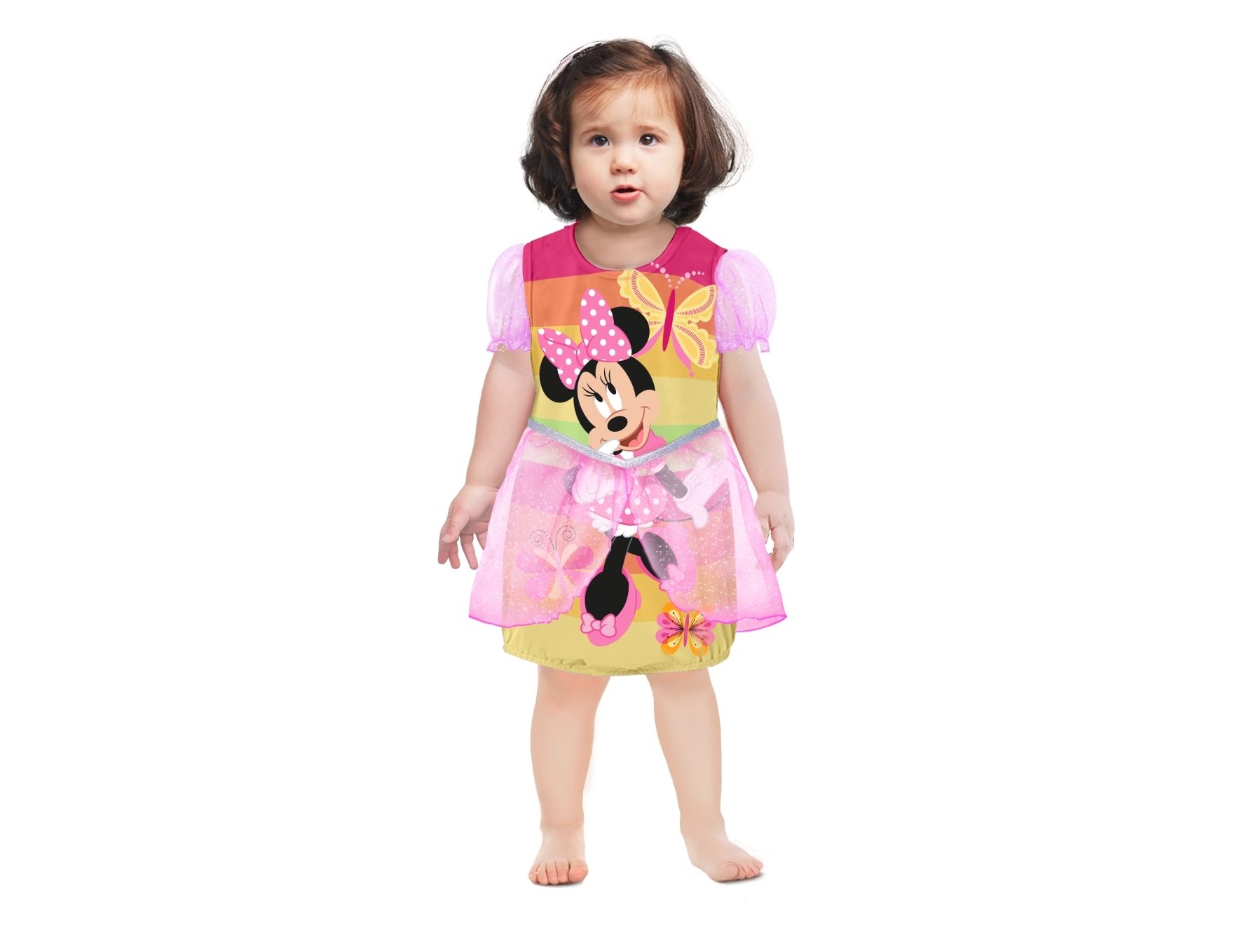 Dette Minnie Mouse kostume er et officielt licenseret Disney kostume. Minnie Mouse kostumet kommer som en sød pink kjole med et billede af Minnie Mouse på maven.