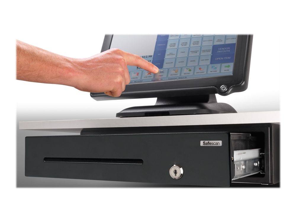 Like all the products in the SD series, the SD-3540 cash drawer is made of strong materials. Its robust steel casing and shatterproof PVC tray with sturdy metal hold-downs are designed to meet the needs of medium-traffic venues such as school and office cafeterias and clubhouse cantinas.