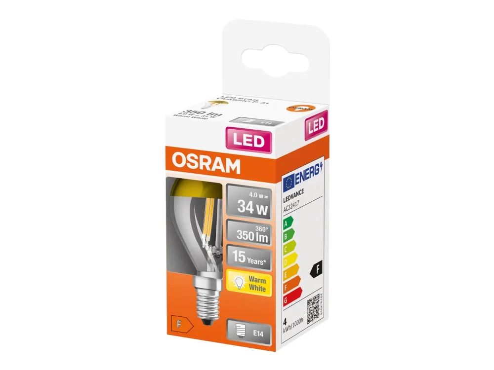 OSRAM LED STAR - LED-filamentlyspære - form: P45 - klar finish - E14 - 4 W (ekvivalent 34 W) - klasse F - varmt hvitt lys - 2700 K
