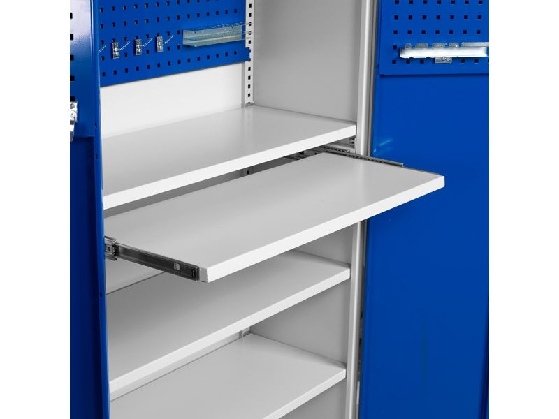 Udtrækshylde til SMV/SMK opbevaringsskabe. Hylden passer til skabsbredde 1000 mm (28x895x370 mm) og er komplet med udtræk. Farve: RAL 7035, lysegrå