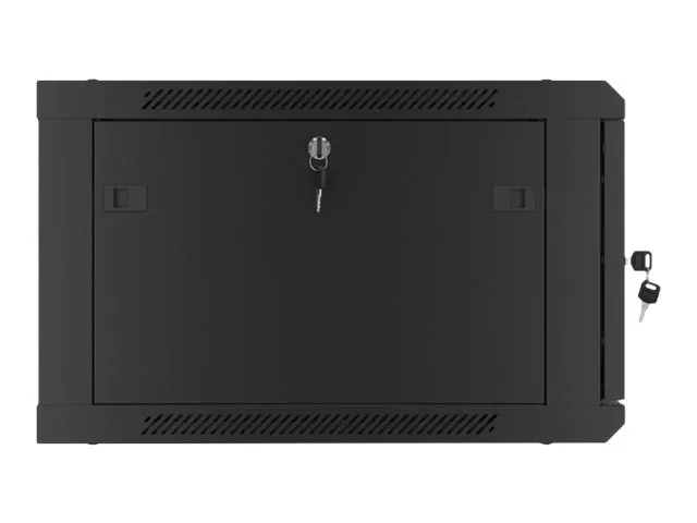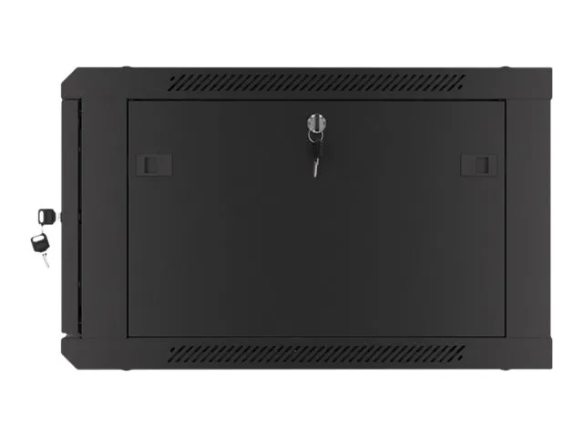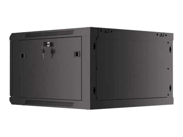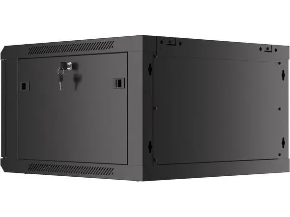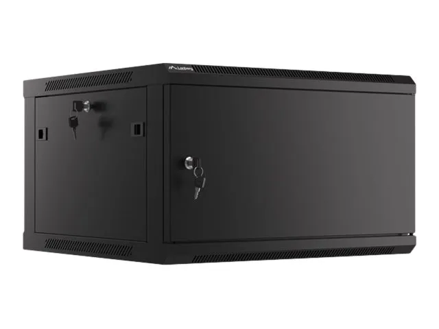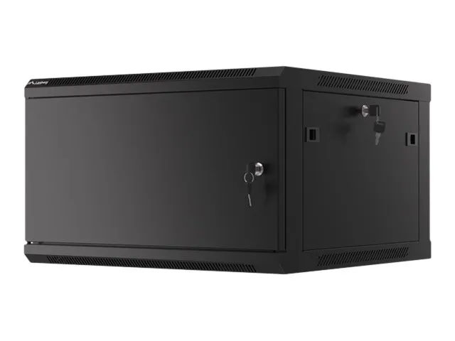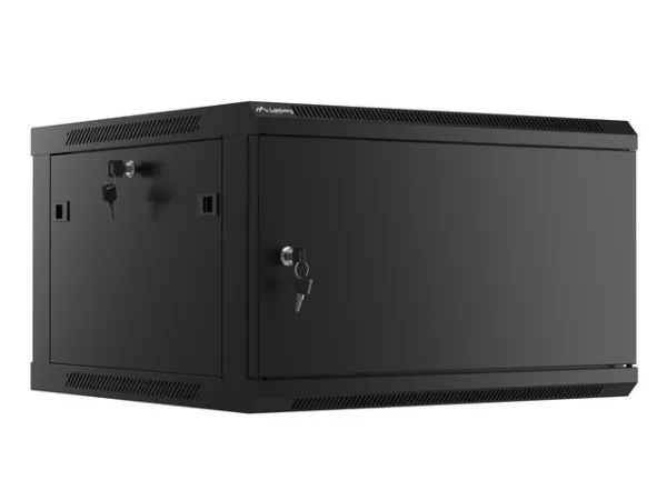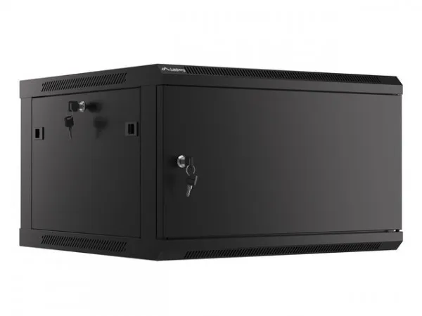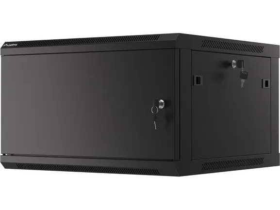 Wall mount, single section Lanberg cabinet WF01-6606-00B is a solution designed to expand networks, installation of cabling and equipment in size 19" with max. 60kg loading capacity. It can be used in networks, server rooms, small and medium businesses. It can also work in low voltage systems such as cable television networks, alarm systems, fire protection systems and access control systems, CCTV and IP surveillance. Appropriate design allows simple self-assembly. Cabinet is characterized by IP20 degree of protection, opening front door with possibility of rotating to 180° with lock, removable side panels (locks included). The cabinet has cable entry panel on top and bottom cover. This product is made of high-grade cold rolled steel.