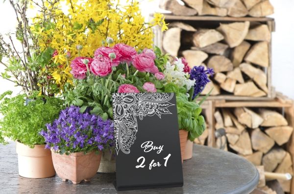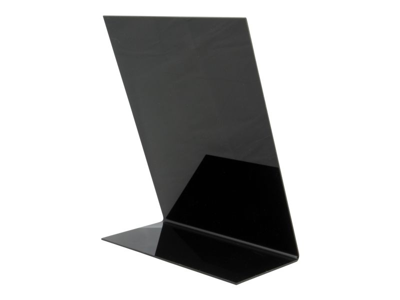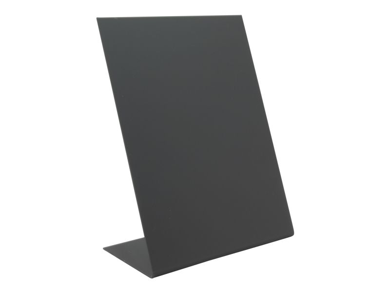 | • L-formet A5 bordskilt • Mat finish foran og en blank bagside • Lavet af akryl • Sæt med 3 tavler • Kan bruges både indendørs og udendørs |