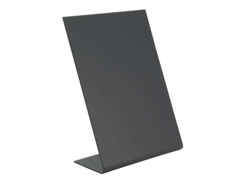 | • L-formet A6 bordskilt • Mat finish foran og en blank bagside • Lavet af akryl • Sæt med 3 tavler • Kan bruges både indendørs og udendørs |