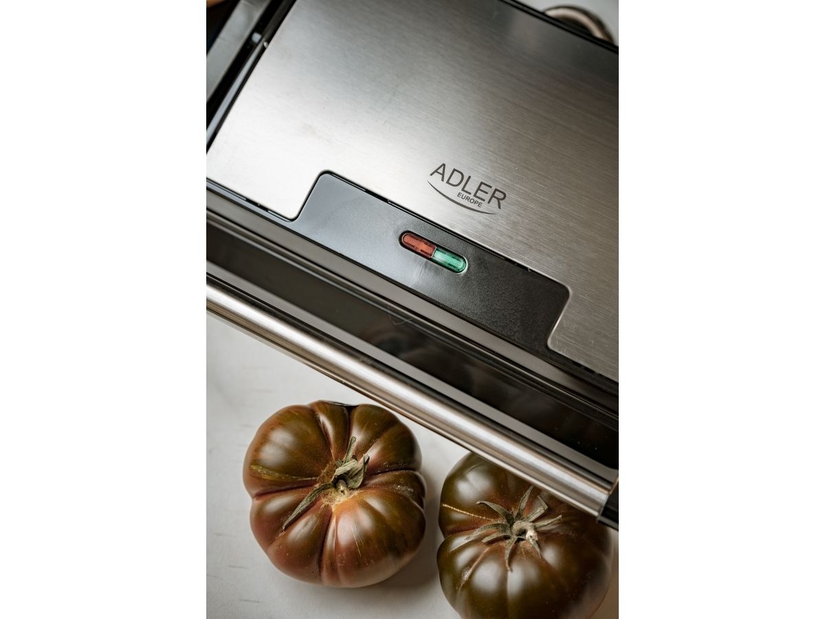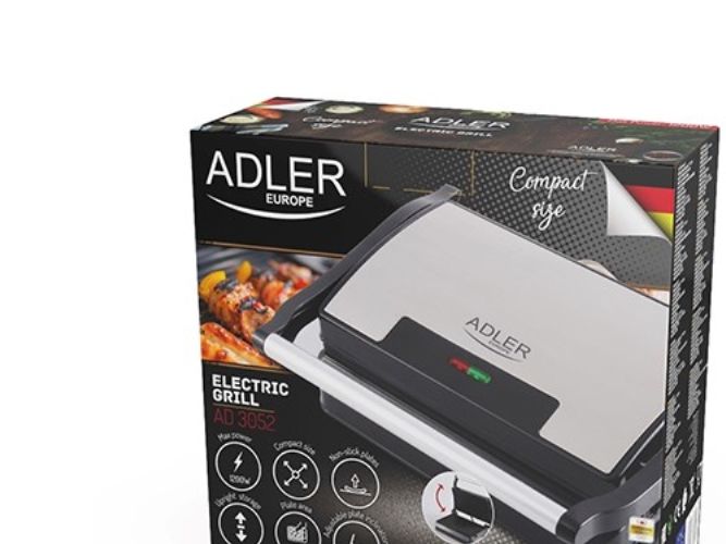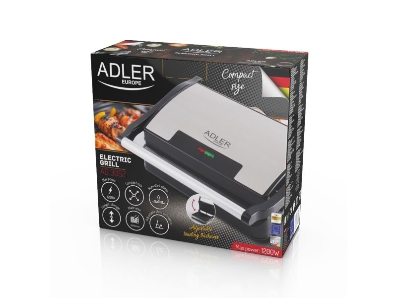 The Adler 3052 electric grill with a maximum power of 1200W gives you the opportunity to prepare a wide range of warm meals - from toasted burgers, through steaks, pork neck, chicken and other meats, to grilled vegetables and cheese. The hobs are protected with a Teflon coating, thanks to which the dishes do not stick, and subsequent washing takes literally a moment. In addition, the coating allows you to grill without adding fat, and the fat drainage hole makes the meals healthier.Adler AD 3052. Product colour: Black, Steel, Form factor: Rectangular, Top surface type: Grate. Power: 1200 W, AC input voltage: 220-240 V, AC input frequency: 50 - 60 Hz. Width: 270 mm, Depth: 220 mm, Height: 85 mm. Package width: 295 mm, Package depth: 265 mm, Package height: 120 mm