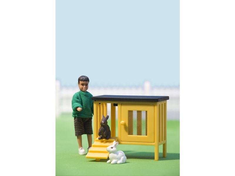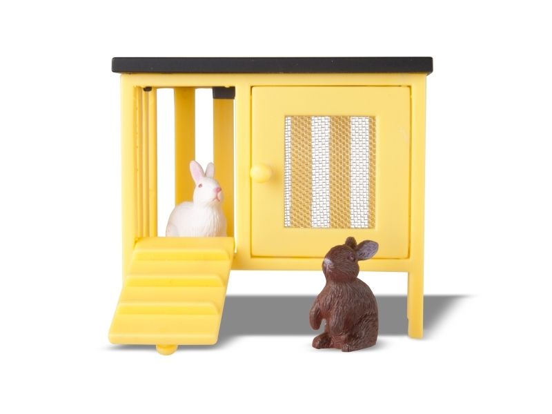 I dette søte tilbehørssettet finner du Lundby-barnas favoritter. Settet består av et gult bur og to søte kaniner – en hvit og en brun – som lengter etter mat, kos og en tur ut i det grønne gresset.