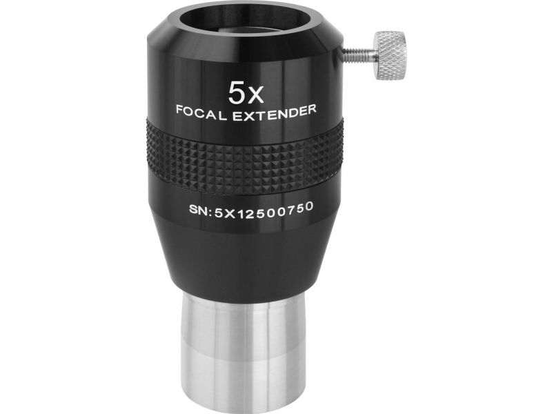 Fokal Extender 5x 31.7 mm Med fokusekstere (også telextendere) forlænger du teleskopbrændvidde og øger dermed forstørrelsen for observation af måne, planeter eller små Deep Sky-objekter. På denne måde får du fordele af okularer, der ikke er brændende længere, som øjenafstanden og den mere behagelige indsigt ved højere forstørrelser. Denne højkorrigerede brændviddeforlænger giver i kraft af sit filinede design fremragende billedkvalitet i hele synsfeltet og egner sig dermed fremragende til visuel observation og fotografering. Kombinationen af den bedste antirefleksbelægning og det telecentriske design gør, at de mest effektive barlowlinser tydeligt overlegen.