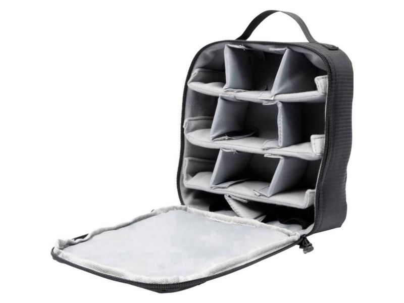Den kompakte og alsidige polstertaske er en universel og variabel opbevarings- og transportløsning.Det er den perfekte kombination af beskyttelse og organisering til for eksempel okularer og filtre til de mindste batterier, kabler og diverse tilbehør. Vægge og skillevægge består af en flerlagskombination af EVA-skum og hård emballage for at opbevare indholdet sikkert og beskytte det mod at rutsje mellem rummene.