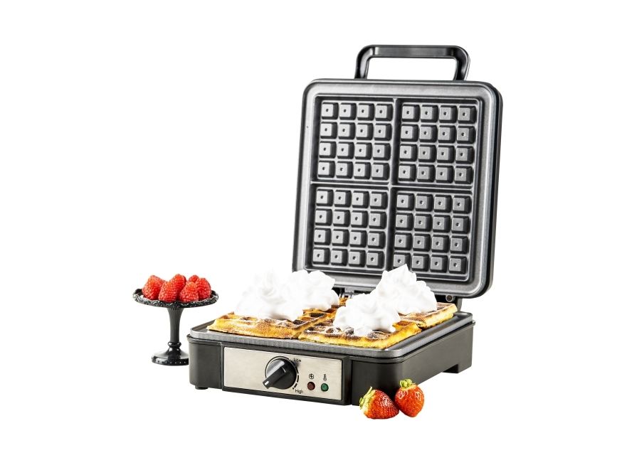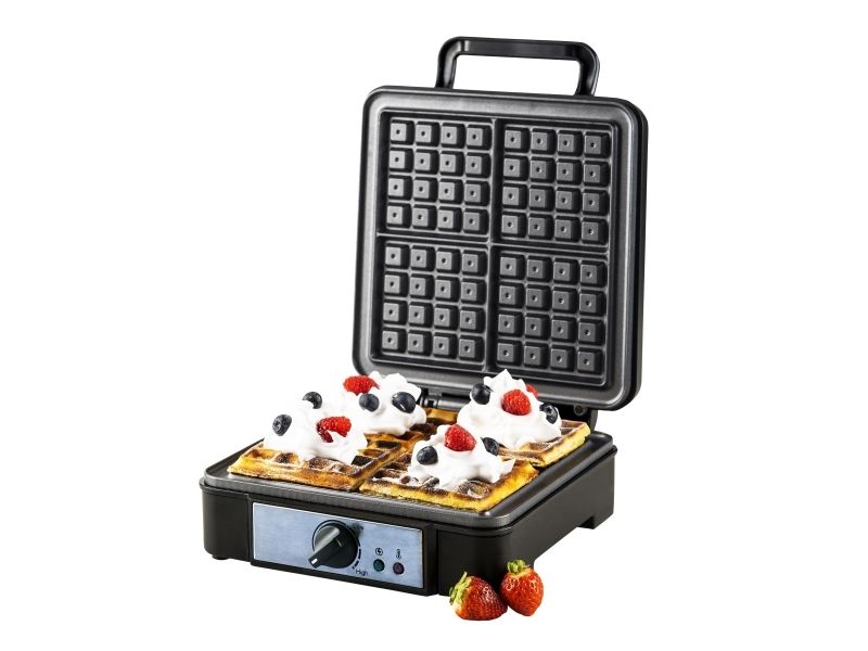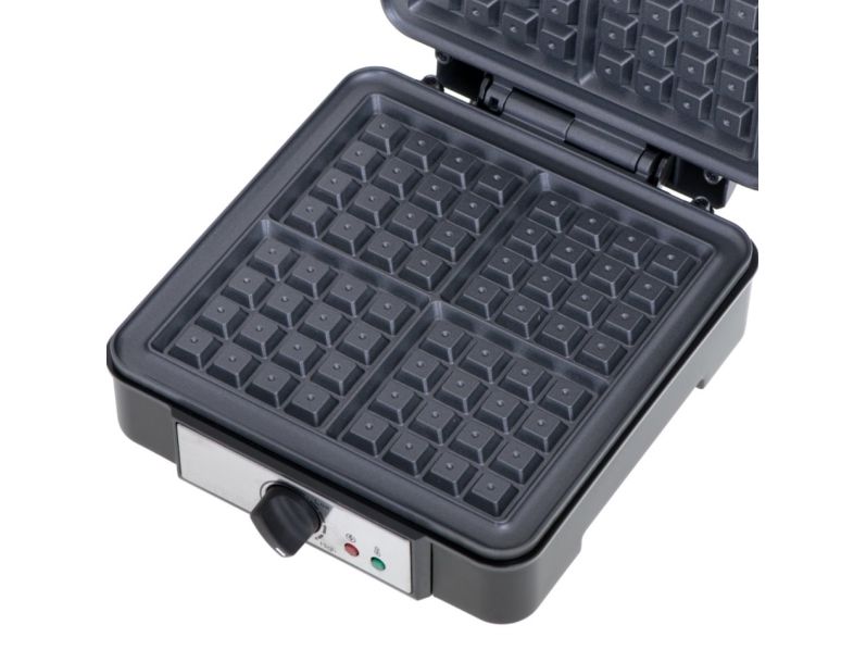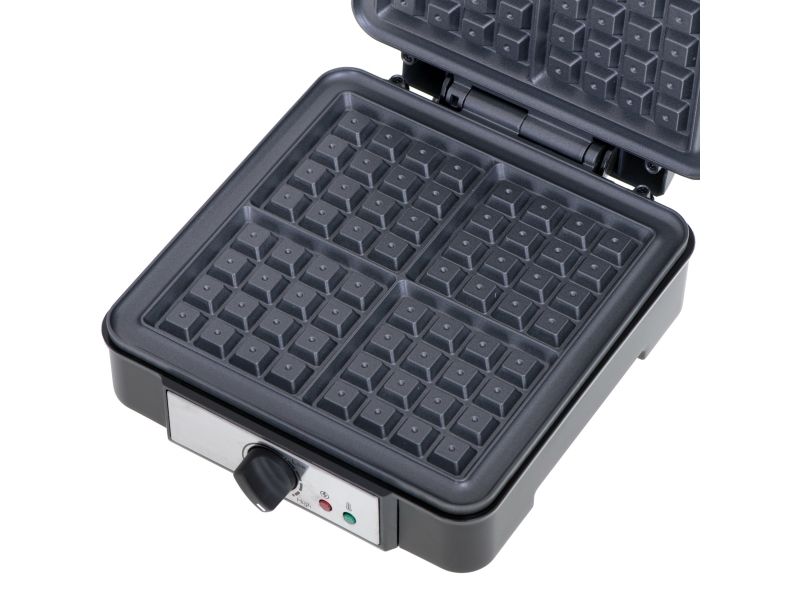 What is the greatest advantage of this waffle maker? Unquestionably, those are the power of 1500W and the non-stick coating of the heating plates. Thanks to them the dough can be baked quickly and accurately, and we will be able to quickly take off ready-made waffles without the need for extra tools. The thermostat control light will show us the moment when the device warms up and you can pour the cake, and then when you can remove the finished product. Deep waffle plates will allow you to prepare up to four waffles of the right thickness and crunchiness for one baking, which will satisfy even the fussy eaters and picky gourmets!