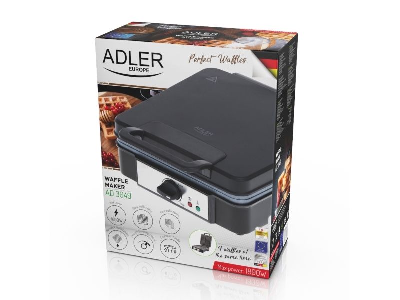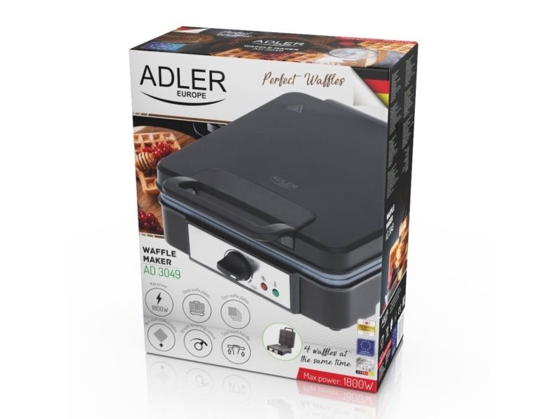 Adler AD 3049, 4 vafler, firkant, Sort, 1800 W, 245 mm, 315 mm