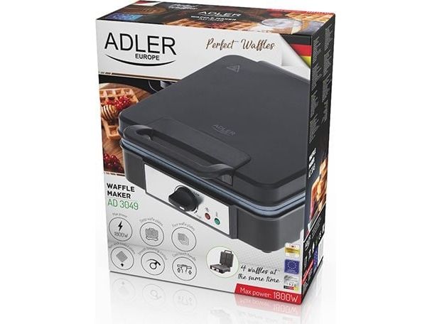 Elegant waffle maker with a high power of 1800 W with temperature control. Perfect for making crispy waffles. Bakes 4 waffles at the same time. It is equipped with heating plates covered with a non-stick coating, which makes cleaning easier. The high power of the device guarantees quick heating. Are you looking for a device that will allow you to prepare perfectly crispy waffles in just a few minutes? The Adler 3049 waffle maker will surely meet the requirements of even the biggest fan of sweets!
