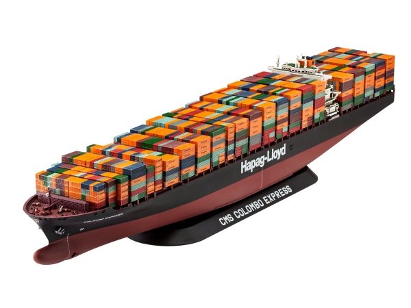 Modelsæt af Colombo Express. Det største containerskib i verden, da det blev taget i brug i 2005. 1/700 skala. 226 enkelte dele. 47,9 cm længde. Velegnet til alderen 12+.