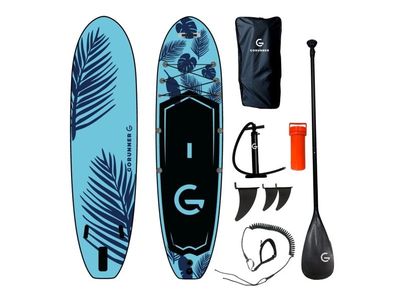 Hold øje med bredden på boardet. Bliver den for smal, fx 80 cm, kan det være vanskeligt at holde balancen i små bølger Håndtag i front - praktisk, når du er i vandet med et barn fx Gorunner indeholder ikke skadelige sundhedsstoffer Alle 3 finner er aftagelige (praktisk når sammenfoldet) ekstra 4 rustfrie stålringe til kajaksæde-montering størrelsen på bagagenettet.