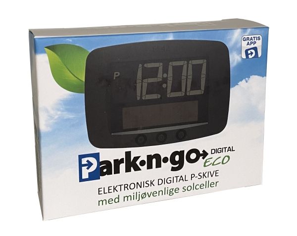 Parkngo ECO Digital er en solcelledrevet elektronisk p-skive med meget lang batterilevetid - helt op til 10 år. Her i lille kompakt model med digital tal-visning.