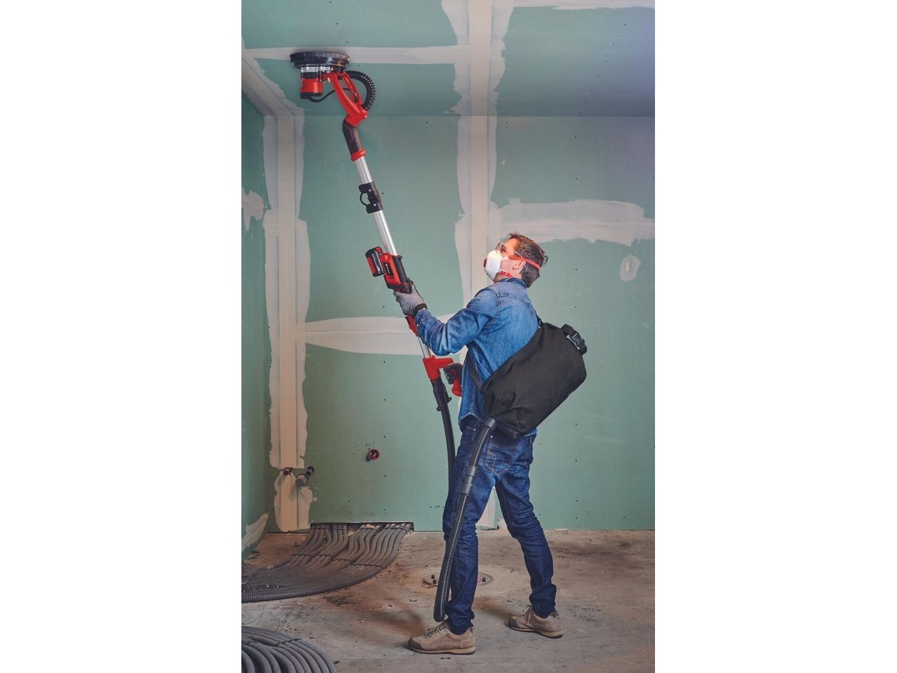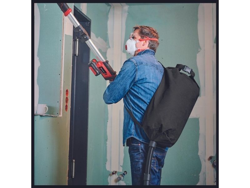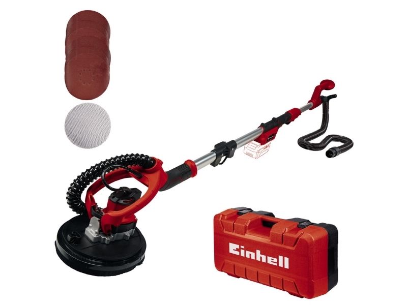 Einhell Professional batteridrevet gipsvægssliber TP-DW 18/225 Li - Solo Medlem af Power-X-Change familien· Omdrejningstal-elektronik til materiale- & anvendelsesspecifikt arbejdeFunktionskontakt med låseknap, der giver et ubesværet arbejdeIntegreret støvudsugning, der sørger for rent og fleksibelt arbejdeFjederlejret slibeplade til optimal kontakt med væggenSlibetallerken med Micro Hook- og Loop fastningFleksibelt drejelig børstekrans til et rent arbejdsområdeSammenklappeligt skaft til nem transport og opbevaringSoftgrip-overflader giver mulighed for at arbejde uden at blive trætAftagelig aluminiumsforlænger med ekstra grebInkl. Forlængerslange med integreret fod Einhell batteridrevet gipsvægssliber TP-DW 18/225 Li - Solo er et effektivt, fleksibelt medlem af Power-X-Change-familien. Tørbygningssliberen er en uundværlig hjælper til at slibe gips og gips-plader i lofter og vægge ved renoverings- og renoveringsarbejde. Omdrejningstal-elektronikken sørger for, at der arbejdes materialer og anvendelsesspecifikt. Nem at håndtere og komfortabel ved kontinuerlig brug er batteri-tørbygningsslibningen ved hjælp af funktionskontakten med låseknap og softgrip-overflader. Den integrerede støvudsugning sørger for et rent arbejdsområde, børstekransen kan drejes fleksibelt. Den fjedermonterede slibeplade sørger for en optimal kontakt med væggen eller loftet. Slibetallerken er udstyret med Micro Hook- og Loop-fastning. Den sammenklappelige styreskinne gør transporten nem og tørbygningssliber pladsbesparende ved opbevaring, og derudover kan aluminiumsforlængelsen med ekstra greb tages af. Der medfølger en forlængerslange med integreret fod, en støvpose med hurtiglås og bærerem samt 6 stk. sandpapir, et gitterline og en adapter til tilslutning af en egnet støvsuger. Leveringen finder sted i praktisk transportkuffert, men uden batteri og oplader. Disse fås separat.