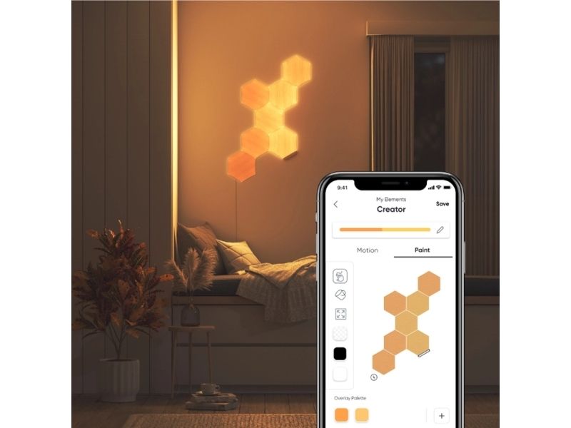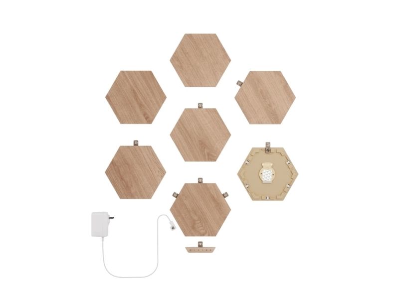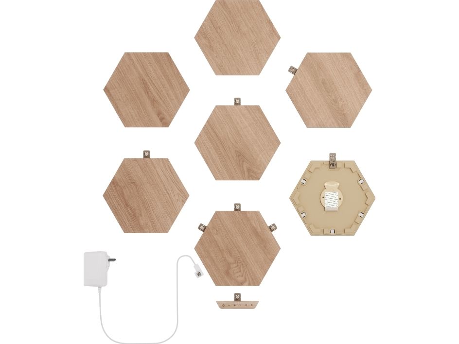 Nanoleaf|Elements Wood Look Hexagons Starter Kit (7 panels)|Cool White + Warm White