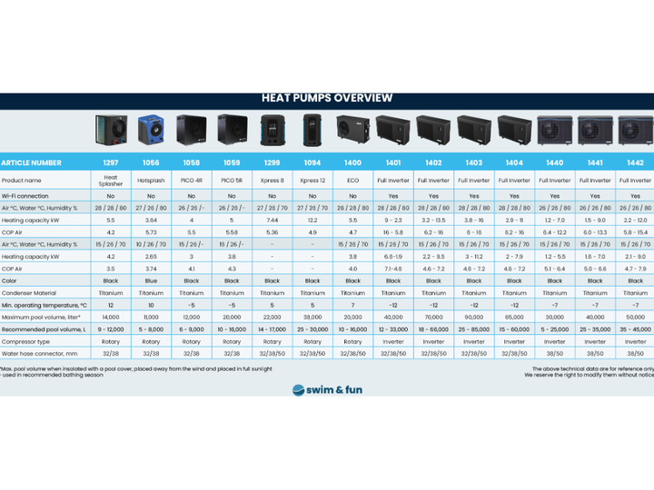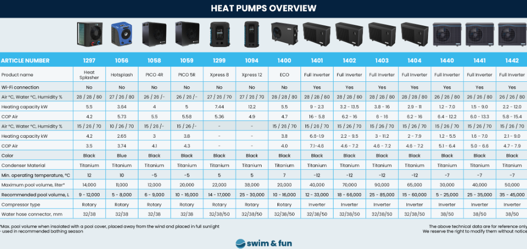 Pico-R varmepumpe tilgjengelig fra Swim & Fun er den minste varmepumpen som fungerer ned til -5 °C. Perfekt for det nordiske klimaet og utvider badesesongen til å være enda lengre enn med en vanlig varmepumpe. En økonomisk og pålitelig varmepumpe i høy kvalitet. Kompressoren i varmepumpen er fra den anerkjente japanske produsenten Toshiba, som er en av de største og mest anerkjente produsentene i verden.
