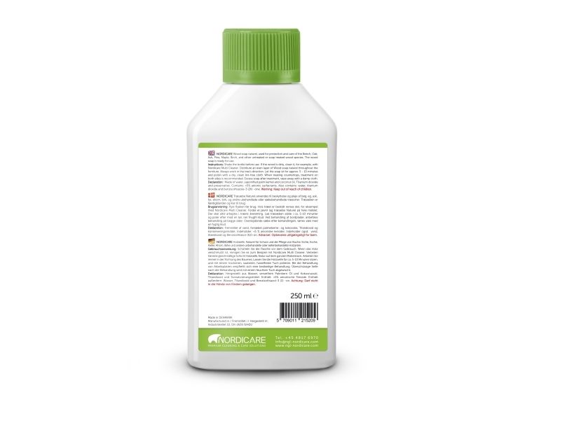 WOOD SOAP natural used for protection and care of the beech, oak, ash, pine, maple, birch, and other untreated or soap treated wood species. The Wood Soap is ready for use.