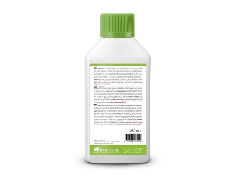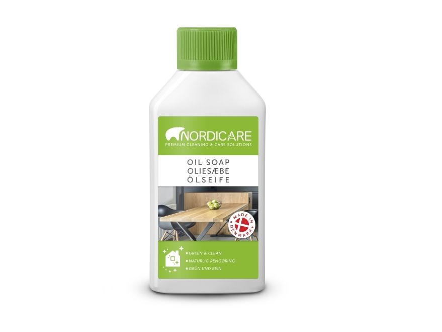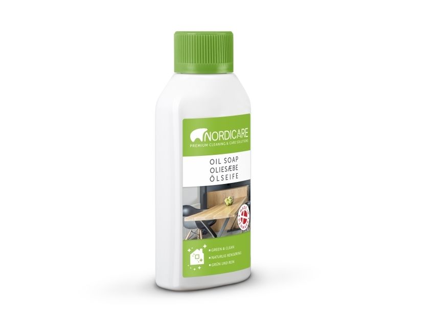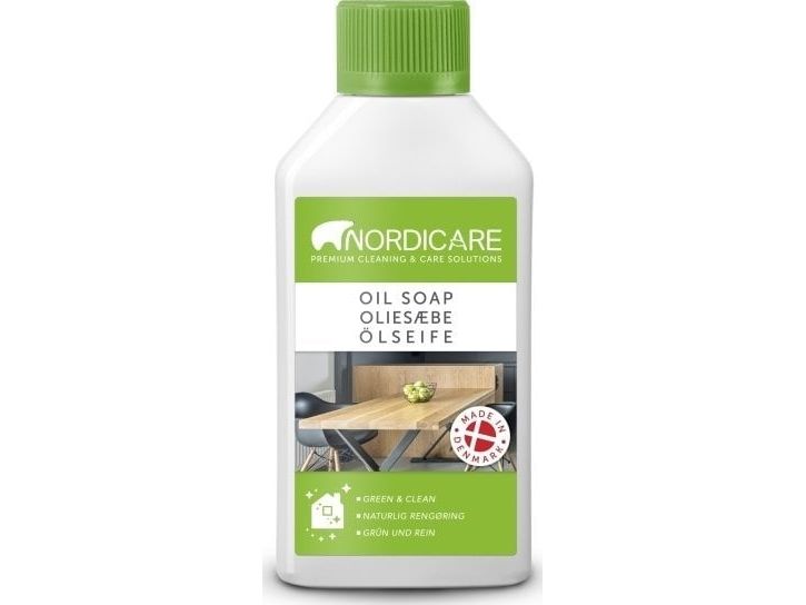 OIL SOAP is used for cleaning of finished wood surfaces like wooden floors, cabinets, tables and chairs, paneling and laminate floors. Also suited for care of non-wood surfaces like ceramic tiles, painted surfaces, linoleum- and vinyl floorings. Provides pro- tection and leaves a dirt repellent surface