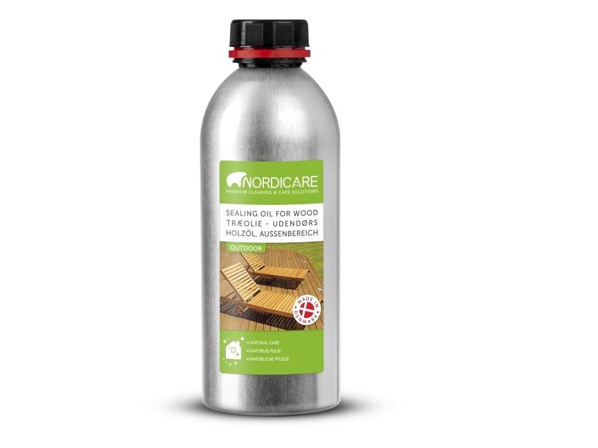 SEALING OIL made for treatment and maintenance of outdoor wooden surfaces, such as garden furniture, porches and oil-finished building structures. The oil is suitable for all types of wood, from exotic woods like teak, merbau of mahogany, pine, beech and oak. The oil penetrates the surface, seals it, and provides a lasting protection against drying out, moisture, dirt, fungi and rot. The natural color and structure of the wood will be amplified