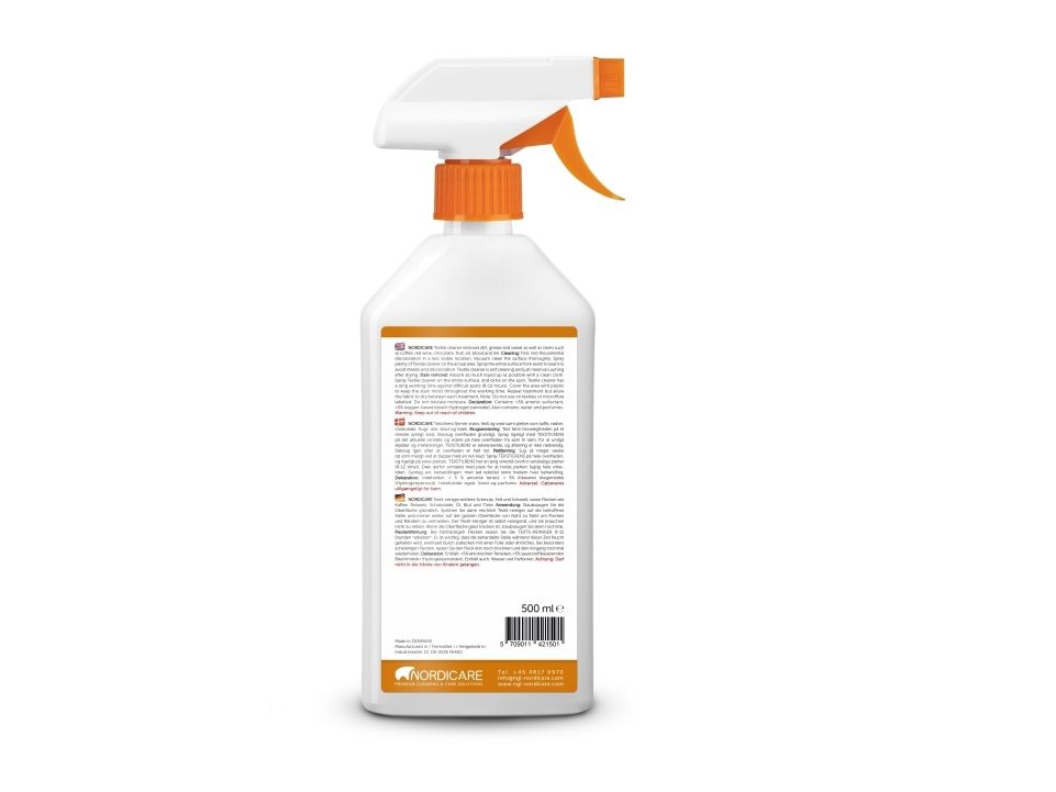 TEXTILE CLEANER is a fabric cleaning product with stain removing properties. It has an antistatic detergent added to prevent re-soiling of the treated surfaces. It removes most stains like; red wine, coffee, chocolate, fruit juice, blood, oil, ink and the like from carpets, furniture and clothing.