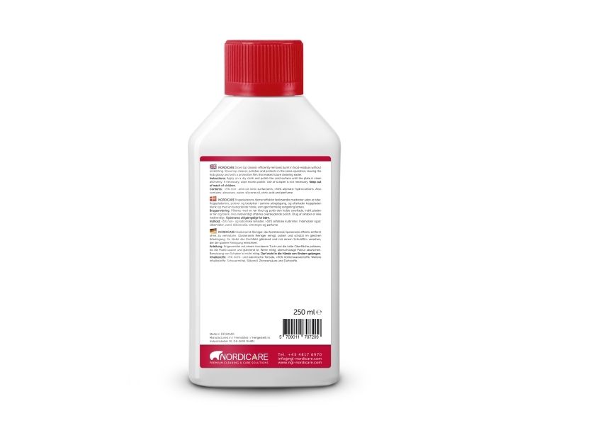 STOVE TOP CLEANER, efficiently removes burnt in food residues without scratching. Stove Top Cleaner, polishes and protects in the same operation, leaving the hob glossy and with a protective film that makes future cleaning easier.