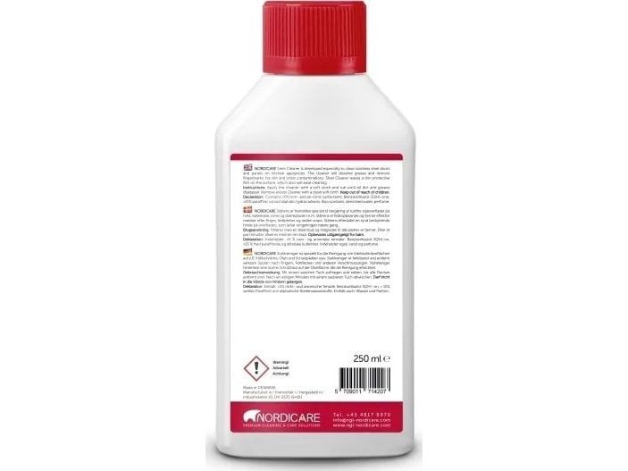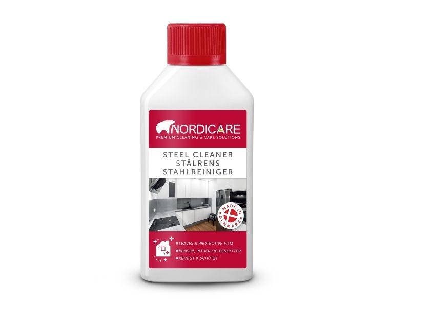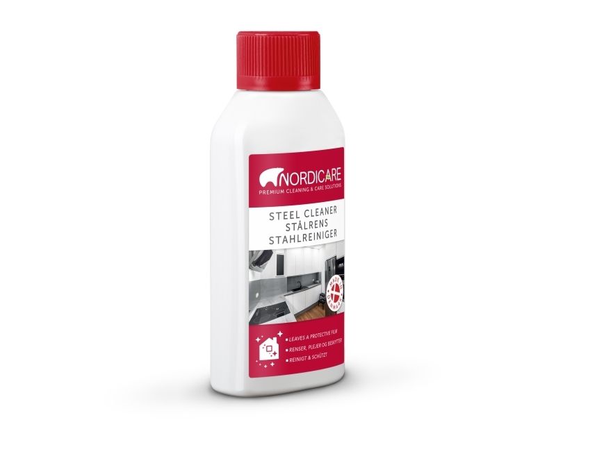 STEEL CLEANER is developed especially to clean stainless steel doors and panels on kitchen appliances. The cleaner will dissolve grease and remove fingermarks, fat, dirt and other contaminations. Steel Cleaner leaves a thin protective film on the surface, which also will ease cleaning