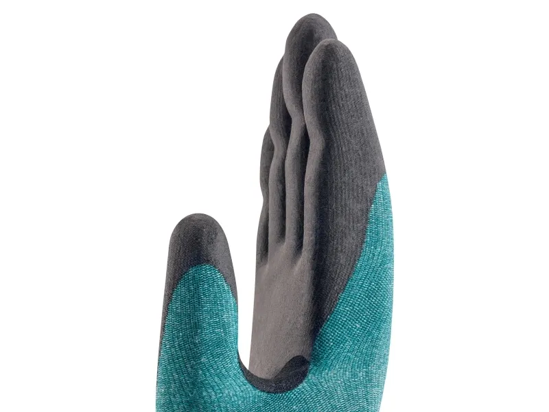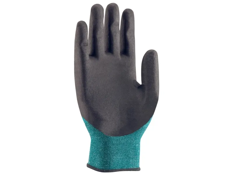 Noticeably superior. Bamboo TwinFlex® D xg: Sustainability, comfort and sensitivity combined with high cut protection (CutD) The patented Bamboo TwinFlex® technology combines the best of both worlds in one fine 18-gauge cut protection glove (Cut Level D): On the inside of the glove: Wearers experience noticeable comfort for their skin thanks to the bamboo-viscose. The smooth fit and high moisture absorption with a rapid action provides long-lasting comfort and high wearer acceptance. With a flexible fit thanks to the bamboo-viscose, the glove adapts precisely to fit the shape of the hand within 3 to 5 minutes of wearing. Keep yourself safe from external hazards: High-performance fibres offer a high level of protection against abrasion and cut hazards. The additional uvex protexxion zone in the area between the thumb and index finger provides double the abrasion resistance (200%) compared to the inside of the glove to increase its service life/durability. Thanks to the Xtra-Grip aqua-polymer foam coating, the Bamboo TwinFlex® D xg offers excellent grip in dry and slightly damp/oily conditions. In addition, the Bamboo TwinFlex D xg features a total of 45% sustainable materials: recycled polyamide and bamboo-viscose, which is based on renewable raw materials.