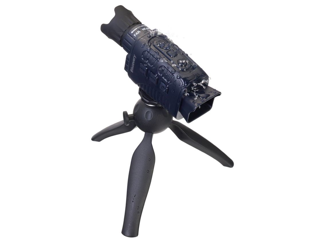 The optical-digital system of this device is in the water-resistant body of the ergonomic design. The monocular ensures a firm grip; the control buttons are right under your fingertips for maximum comfort. The standard batteries hold the charge from 4 to 10 hours (depending on the IR intensity). The device comes with a table tripod perfect for long stationary observations and picture stabilization when video recording.