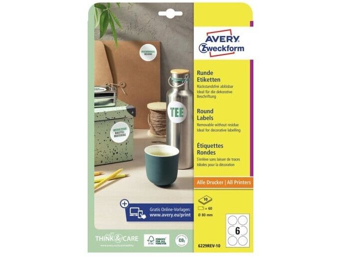 | • Brug etiketter i specielle former for maksimal effekt • Ideelle til at skabe ekstra opmærksomhed • Klæber effektivt på glas, folie, papir - nemme at tage af igen • FSC® certificerede • Design og print nemt med GRATIS skabeloner |
