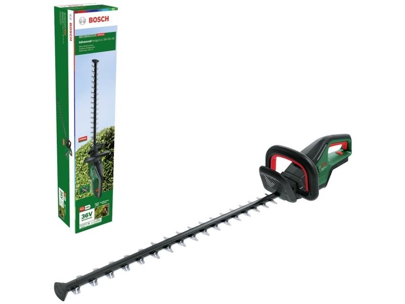 The cordless AdvancedHedgeCut 36V-65-28 tackles dense hedges and bushes with ease. The brushless motor combines powerful performance with maximum efficiency, while less motor heat enables longer service life. As it's light to handle, this tool puts less strain on gardeners' backs, shoulders, and wrists. The Bosch-patented Anti-Blocking System avoids potential jamming, ensuring continuous cutting and less downtime. This is the all-rounder for cutting all hedges, including hawthorn, berberis, or blackthorn hedges, and for branches up to 28 mm.