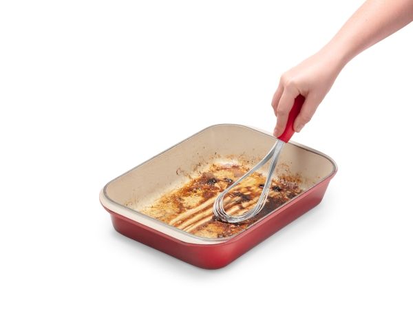Flisk fra Dreamfarm er et ballonpiskeris, der kan drejes og foldes sammen, så det fylder minimalt og kan opbevares i skuffen uden at det bliver viklet sammen med andre køkkenredskaber. Ved at vride på det ergonomiske håndtag fremkommer 3 folde muligheder - et ballonpiskeris til piskning, et saucepiskeris til væsker og et fladt piskeris til ex. røræg. For at rengøre skal du blot vride Flisk til et fladt piskeris, skrabe overskydende ingredienser af og komme i opvaskemaskinen. Ingen adskillelse og udført på ingen tid! Materiale er rustfrit stål og polypropylen. BPA-fri. Tåler opvaskemaskine.