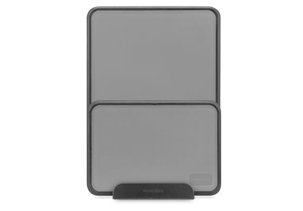 Fledge fra Dreamfarm er et smart dobbeltsidet skærebræt med fleksible kanter, der vippes op for at gøre den til en bakke og forhindre, at maden falder ned, hvilket gør den perfekt til servering. De unikke flip-up kanter forhindrer også maden i at falde eller rulle af siderne, når det transporteres fra køkkenbordet til komfuret eller grillen. Fledge har skridsikre gummifødder på begge sider, for at holde den sikker og give dig kontrol mens du skærer. Den har knivvenlige mønstre på begge sider og bøjer ikke efter maskinopvask. Fledges udskæringsside har en generøs juicerille til at opfange kødsaft og lign., når du skærer steg og andre saftige fødevarer. Kan nemt klemmes sammen til en lille tud, så væsken kan hældes over i en gryde til brug i saucer el.lign. Sættet leveres med en sort fod til opbevaring af skærebrætterne på køkkenbordet eller i skabet. Mål Fledge: L:175xB:245xH:15. Mål Big Fledge: L:350xB:245xH:15. Materiale er polypropylen, TPE. BPA-fri. Tåler opvaskemaskine.