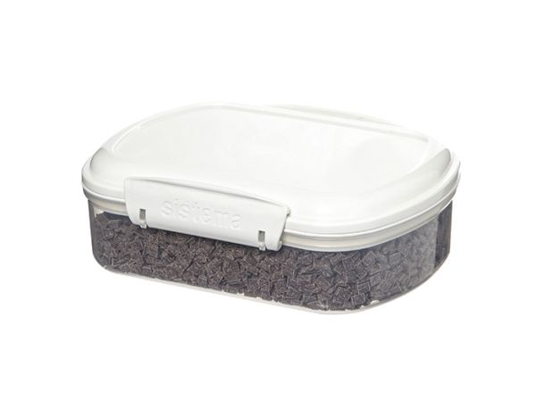 Bake It 685ml. Hold orden i dine køkkenskabe og skuffer og bevar dine bageingredienser friske i de flotte opbevaringsbokse i Sistema® Bake It™ serien. Meget anvendelig til bl.a. sukker, gryn, nødder og diverse kagepynt. Sistemas® patenterede nemme låseclips og fleksible forsegling sikrer, at indholdet forbliver frisk i længere tid. Dette produkt kan stables, kan bruges til opbevaring af tørre ingredienser i dit skab eller skuffer, fødevarer i køleskabet eller i din fryser. Endvidere er produktet sikkert at bruge i opvaskemaskinen (i øverste kurv) samt mikroovnen (uden låg). Phthalat & BPA fri.