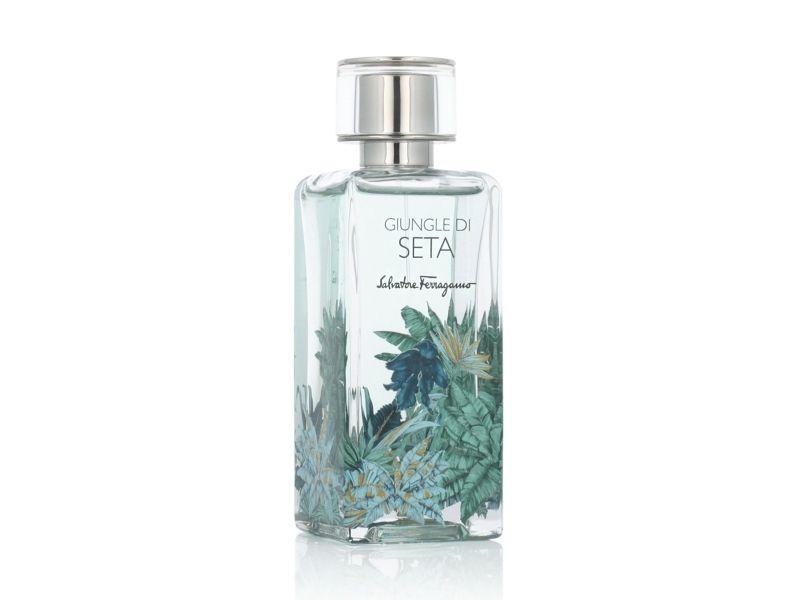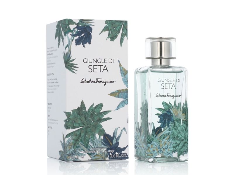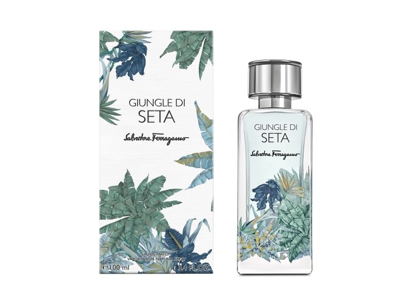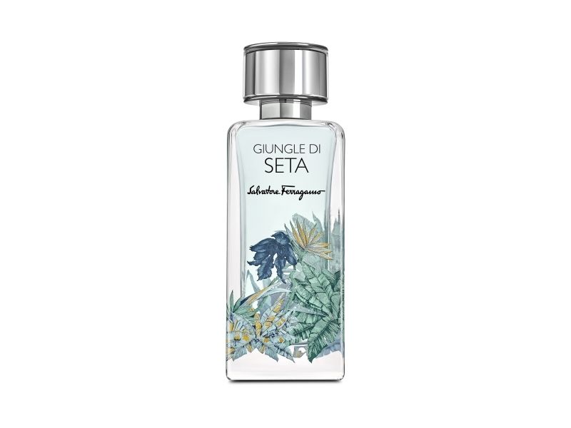Storie di seta is the new line of fragrances inspired by the imaginary worlds of Salvatore Ferragamo's silk creations. A refined collection of four universal and fresh perfumes, each unique fragrance is bound by an exclusive mix. A rich, exotic flora and green olfactory notes unveil Giungle di Seta, an eau de parfum inspired by mysterious, remote landscapes. A fresh and energetic perfume, Salvatore Ferragamo's new olfactory chapter opens a tear on the overwhelming atmospheres of wild jungles.
