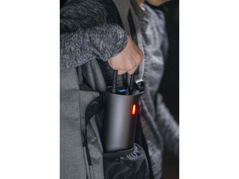 Pumpen er ledningsfri og lades hurtigt op via USB-stik. Den er lille og kompakt - faktisk er den ikke større end en dåsesodavand. Den har digitalt display og en række standardprogrammer.