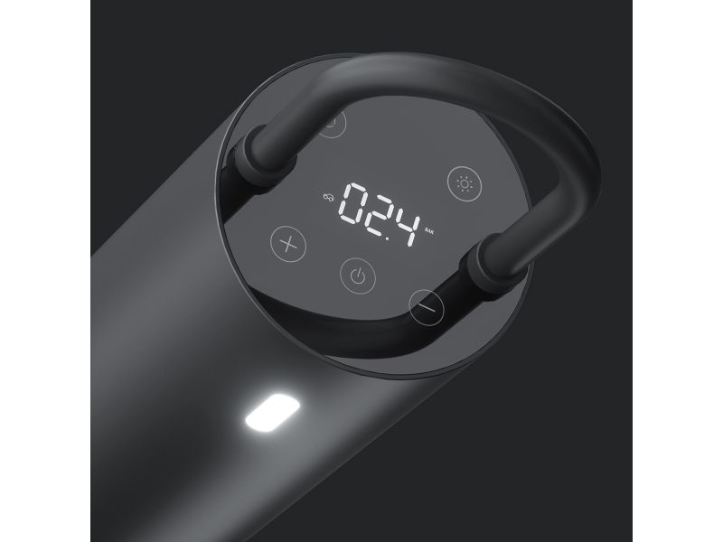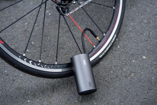 Den smarte pumpe puster luft i cykeldækket på kun 78 sekunder, og den klarer op til 9 cykeldæk på en fuld opladning.