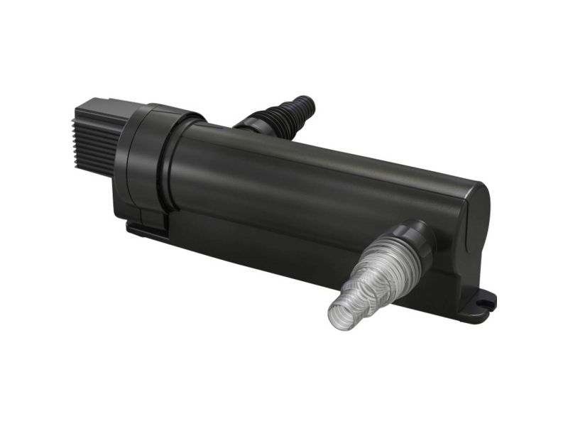 Uklare udsigter i dammen? Så er det tid til at opgradere Pontec UVC-klaringstank Pondotronic UVC 7. Egnet til damme med op til 7.000 liter (uden fiskebestand), fjerner kraften fra 7-watt-UVC-lampen grønne alger og reducerer skadelige kim og bakterier. Resultatet er klart vand. Tilslut blot klaringeren mellem dampumpen og damfilteret. PondoTronic kan anvendes universelt til mange damfiltermodeller. Til kontrol af lyskilden er apparatet udstyret med en optisk funktionskontrol. For en stærkere UVC-behov kan du vælge Pontec UVC-klaringstank Pondotronic UVC 11.