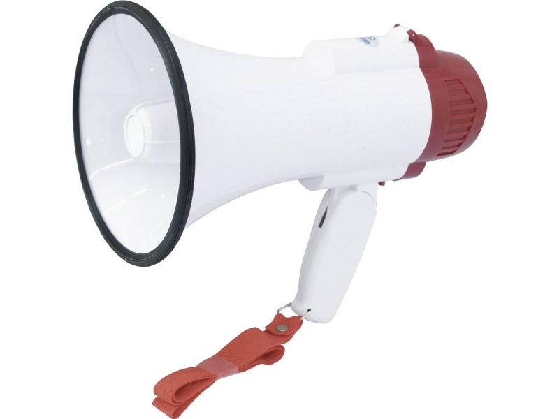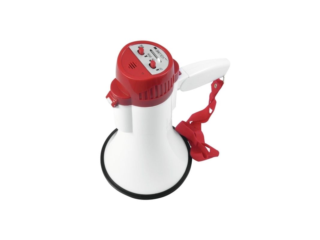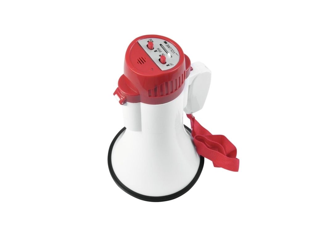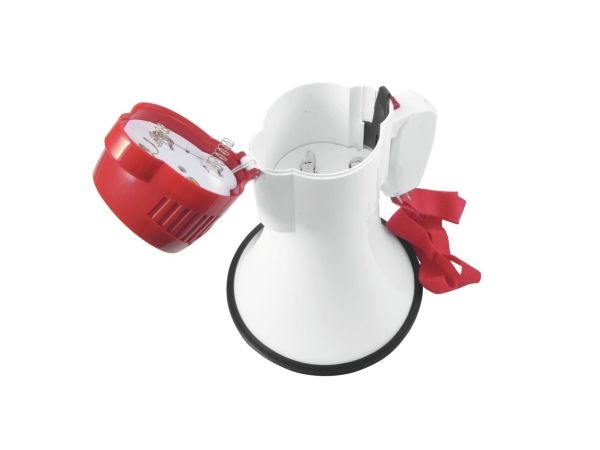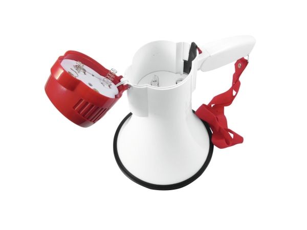 Skaf dig selv ørenlyd! · 10 W megafon i lille konstruktion med integreret mikrofon · skiftbar sirene · lydstyrke kan reguleres trinløst · pistolgreb og bærerem · med førsteklasses plastkabinet (ABS) slag- og ridsefast · lav vægt · til 4 x 1,5 V D-batterier (type D) (medfølger ikke)