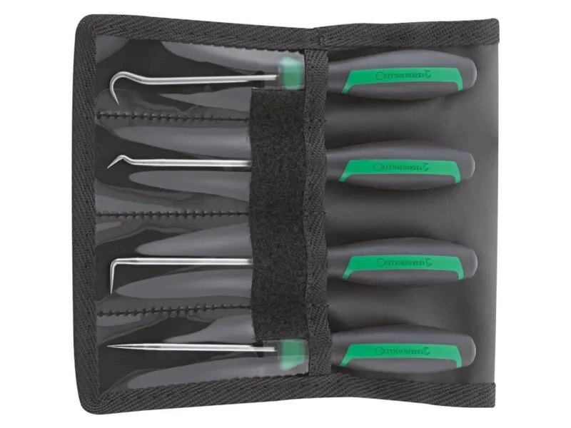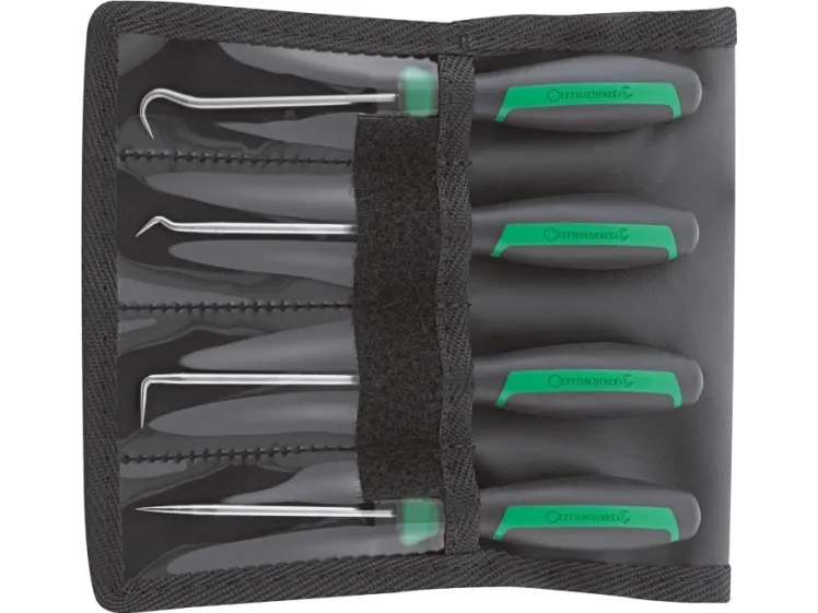 OBS! Denne produktbeskrivelse er endnu ikke blevet oversat til dansk af vores oversættere. Derfor er teksten maskineoversat fra den tyske originaltekst. Indhold: Nr. 13000 (lige), 13001 (45°), 13002 (90°), 13003 (rundbøjet). Kan anvendes universelt, for eksempel til hulning af bløde materialer, montering og afmontering af små dele som følge af ringe- og O-ringe, pakninger, pynteliste clips eller garnering I tekstiltaske