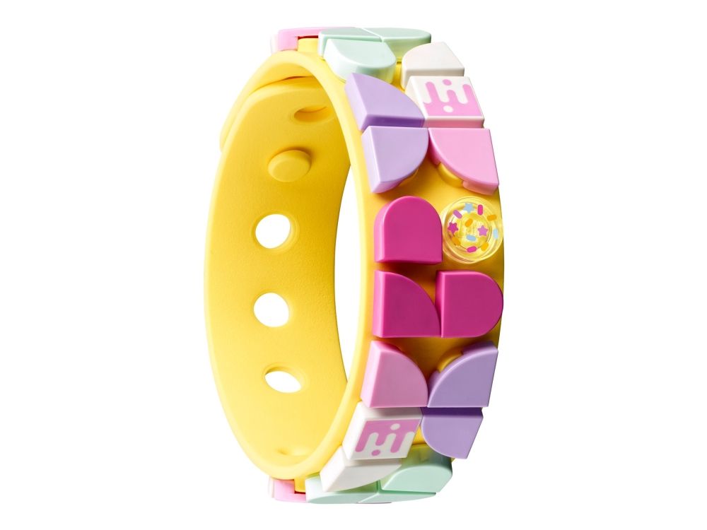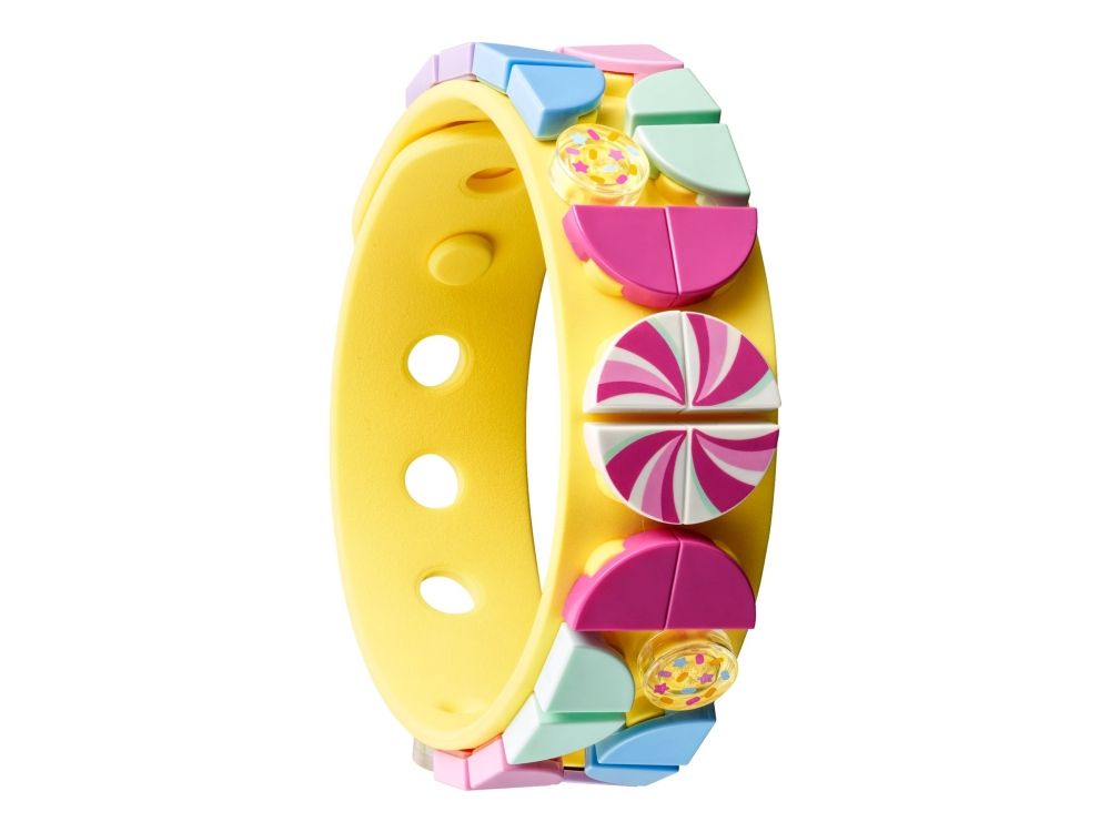 2. En overflod av sukkertøyfargede mønster – barn utvikler sine kreative ferdigheter når de designer med settet, som inneholder et bøyelig, pastellgult armbånd, et hvitt bag-merke og mange fargerike fliser