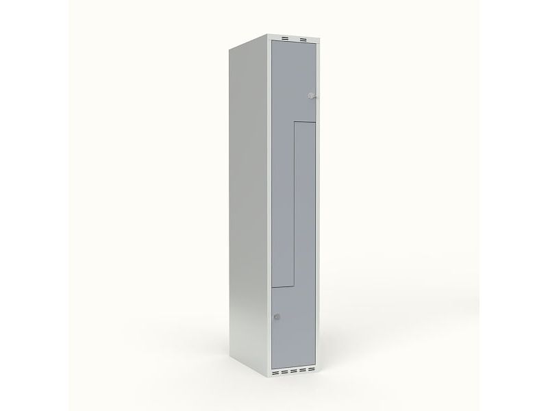 Skoleskap 1x400 skrått tak, Z-dør grå ståldør sylinderlås