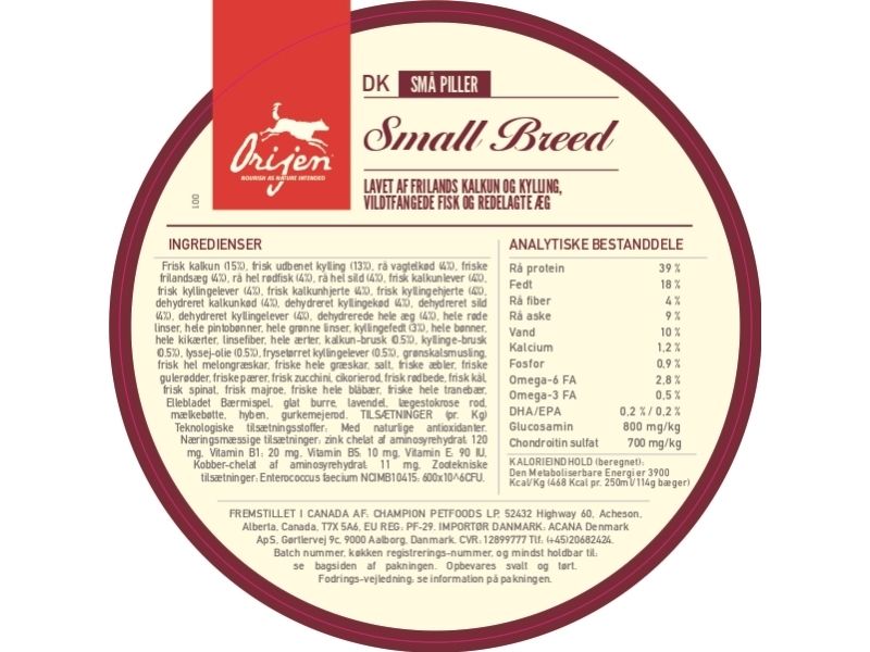 Giv din hund de bedste vilkår med kraften fra protein-rig kost der sikrer stærk næring. Din small-breed hund har visse næringsmæssige behov, og behøver en Biologisk Korrekt kost for at opnå det perfekte. ORIJEN Small Breed er lavet spcifikt til hunde af små racer, med nærings fra frilands kylling og kalkun, vildtfangede fisk samt vagtel - pakket i en unik pille der er lettere for dem at spise. ORIJEN er pakket med friske og rå WholePrey ingredienser - hvilket sikrer din hund et særdeles velsmagende måltid - uden sammenligning