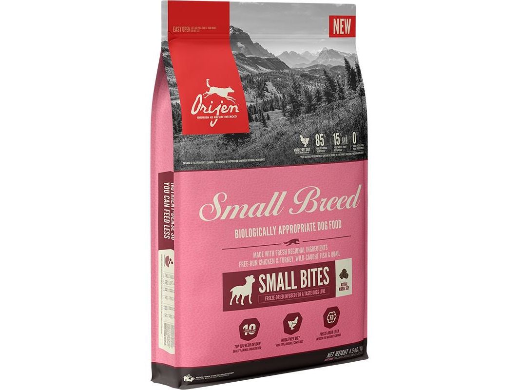 Giv din hund de bedste vilkår med kraften fra protein-rig kost der sikrer stærk næring. Din small-breed hund har visse næringsmæssige behov, og behøver en Biologisk Korrekt kost for at opnå det perfekte. ORIJEN Small Breed er lavet spcifikt til hunde af små racer, med nærings fra frilands kylling og kalkun, vildtfangede fisk samt vagtel - pakket i en unik pille der er lettere for dem at spise. ORIJEN er pakket med friske og rå WholePrey ingredienser - hvilket sikrer din hund et særdeles velsmagende måltid - uden sammenligning