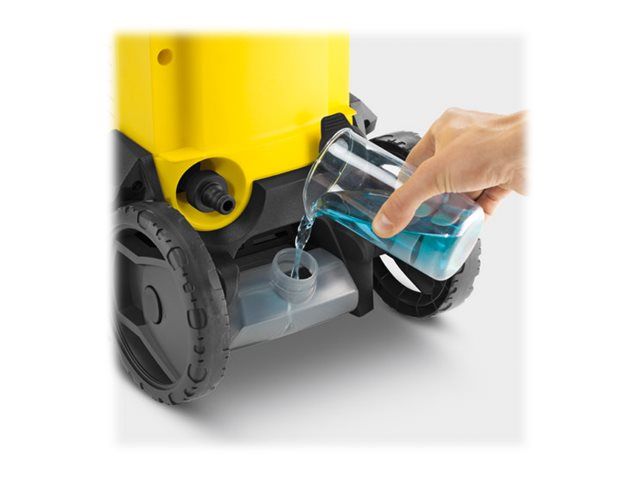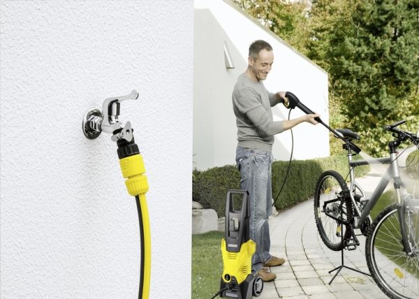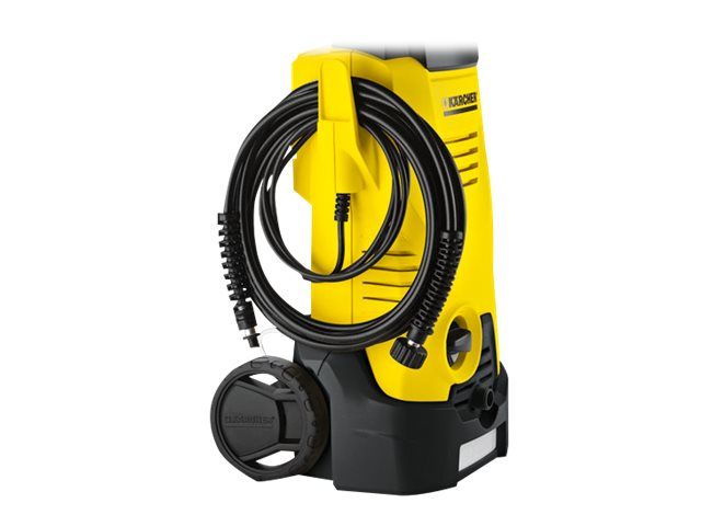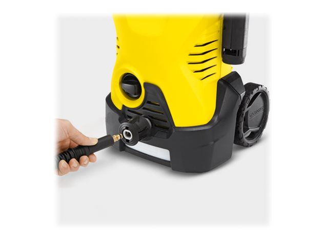 The Kärcher "K3" - say "Goodbye" to normal dirt. High-pressure cleaner with quick connect gun, 6 m high-pressure hose suitable for occasional use around the home, e.g. on bicycles, garden fences and motorbikes. The water pressure can be adjusted to the surface being cleaned by simply twisting the Vario Power spray lance (VPS). The dirt blaster with rotating pencil jet removes even the most stubborn dirt. The "K3" pump is protected by a water filter - for a long service life.