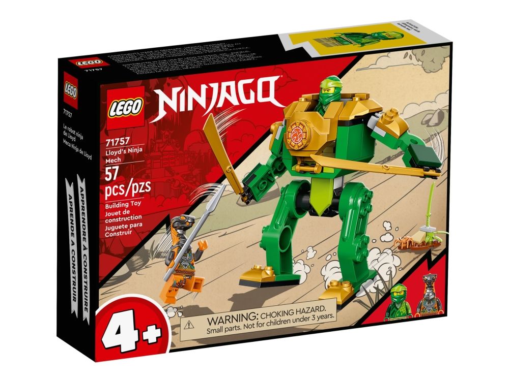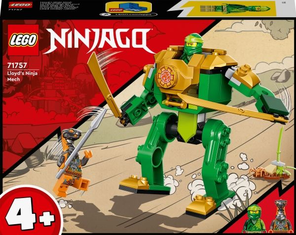 Lekesettet Lloyds ninja-robot (71757) hjelper barn fra fire år å utvikle byggeferdighetene sine. Det inneholder en bevegelig robotleke med ninja-cockpit, to store sverd og to minifigurer.