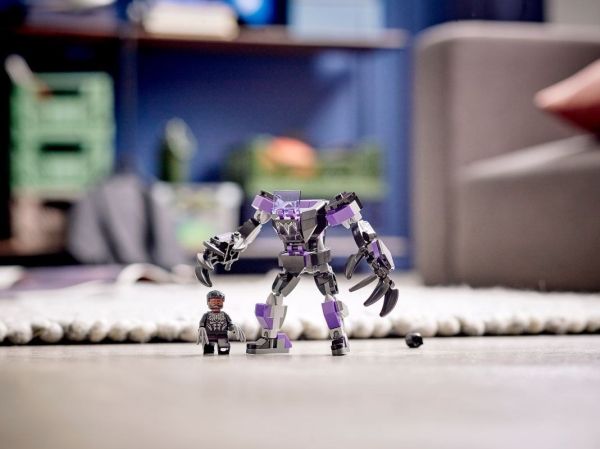 La barna få oppleve Marvel-lek i stort format. Når de plasserer Black Panther-minifiguren i cockpiten på Black Panther-roboten, åpner robotens kjempestore, bevegelige armer og bein og knuseklo for utallige actionfylte superhelteventyr.Barna kan slåss mot skurker, gå til kamp mot andre roboter og gjenskape yndlingsscenene sine fra Marvel-filmene. Og når den actionfylte leken er over, kan Black Panther-roboten brukes som imponerende utstillingsmodell på barnerommet.