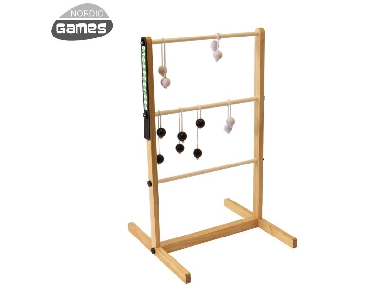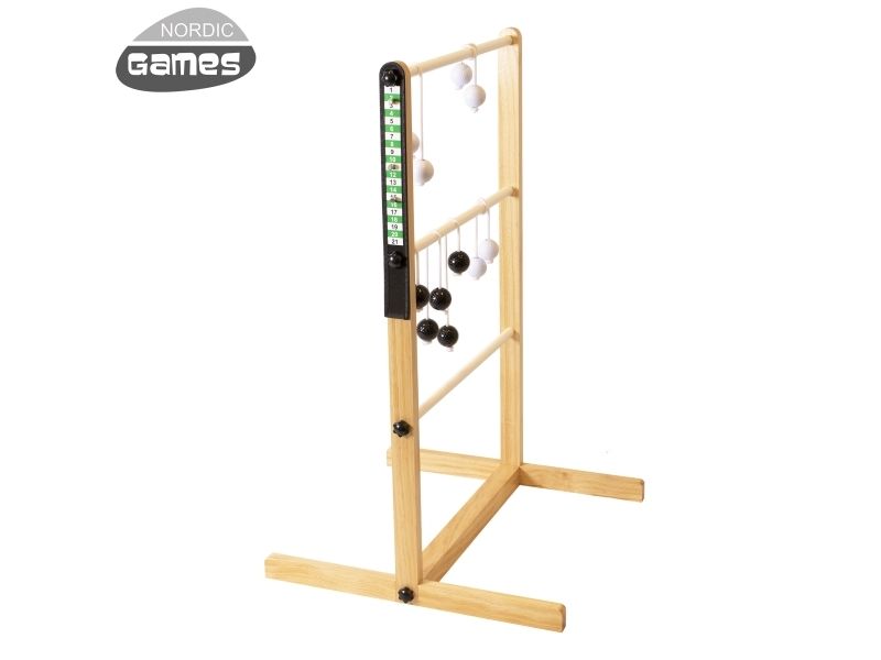 Stigegolf deluxe fra NORDIC GAMES er et kvalitetsspil fremstillet i 100% FSC® certificeret, bæredygtigt træ. Der er magnet pointtavle på siden af stigegolf sættet, hvor der med de medfølgende magneter kan føres pointregnskab. Boldene er endvidere rigtige golfbolde. Spillet er for 2 spillere eller 2 hold, men kan udvides til 4 spillere eller 4 hold, ved at bestille ekstra golfbolde med snor. Golfbolde farverne der følger med sættet er hvid og sort. Sættes kan udvides med golfbolde i farverne blå og grøn.
