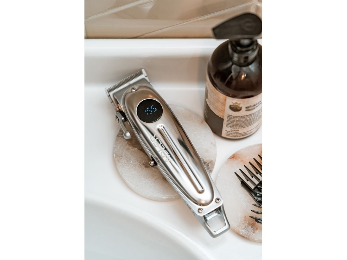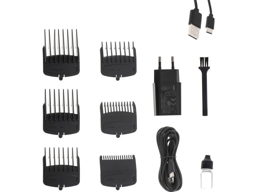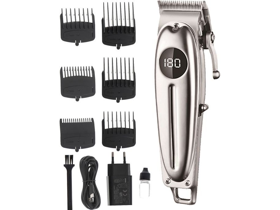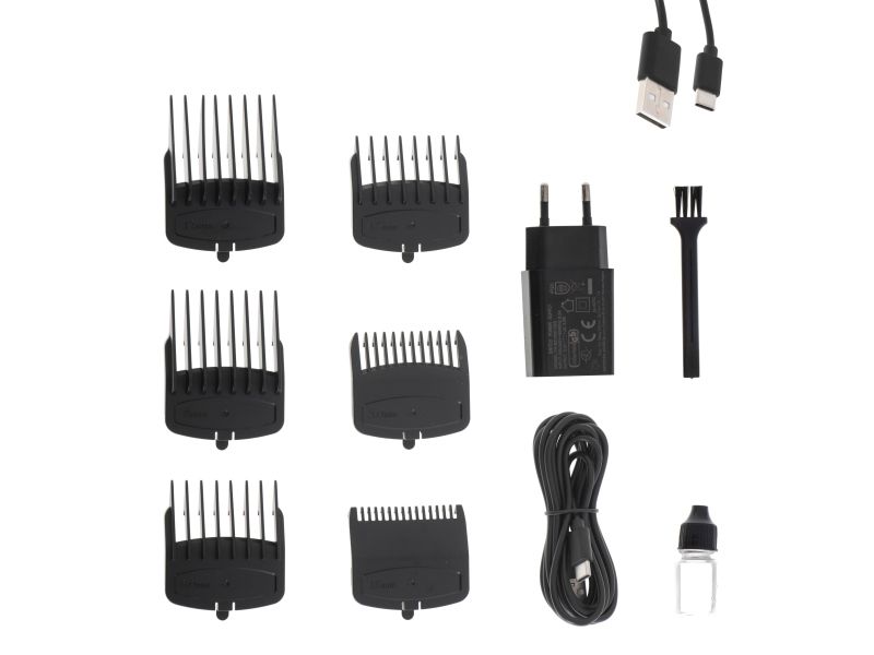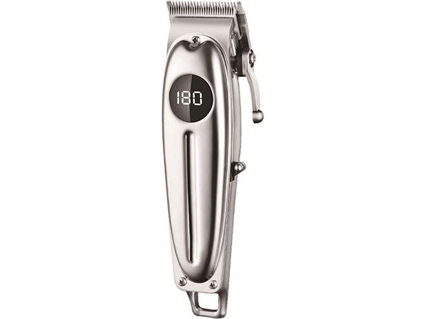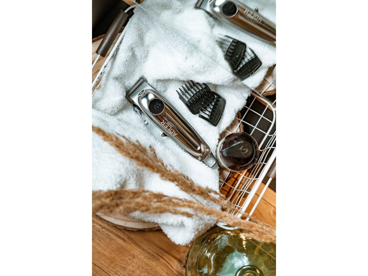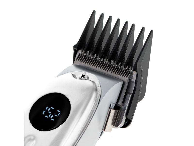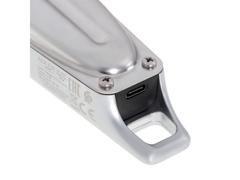The Adler 2831 hair clipper offers a professional and precise haircut with a ceramic blade. A powerful battery allows you to use the razor for up to several hours, but you can always use the cord if you want. The machine is equipped with 6 different attachments: 1.5, 3, 4.5 6, 9, 12, mm and an adjustable head with a cutting length of 1.0-1.8 mm. The LCD display shows the battery charge percentage.Adler AD 2831. Product colour: Silver, Stainless steel, Shape: V-shaped, Minimum hair length: 1 mm. Display type: LCD. LED indicators: Battery level. Power source: AC/Battery, Operating time: 180 min, Battery type: Built-in battery. Cord length: 2 m, Weight: 410 g