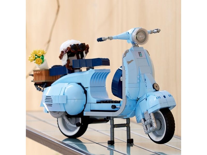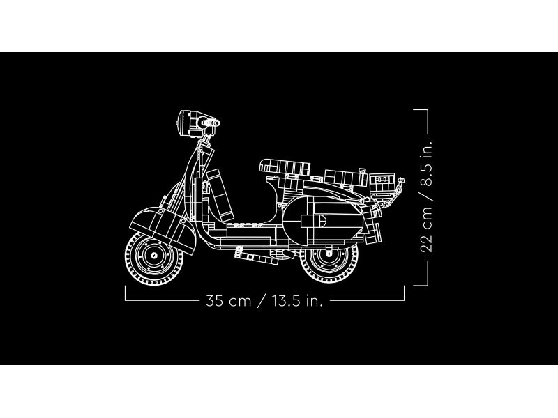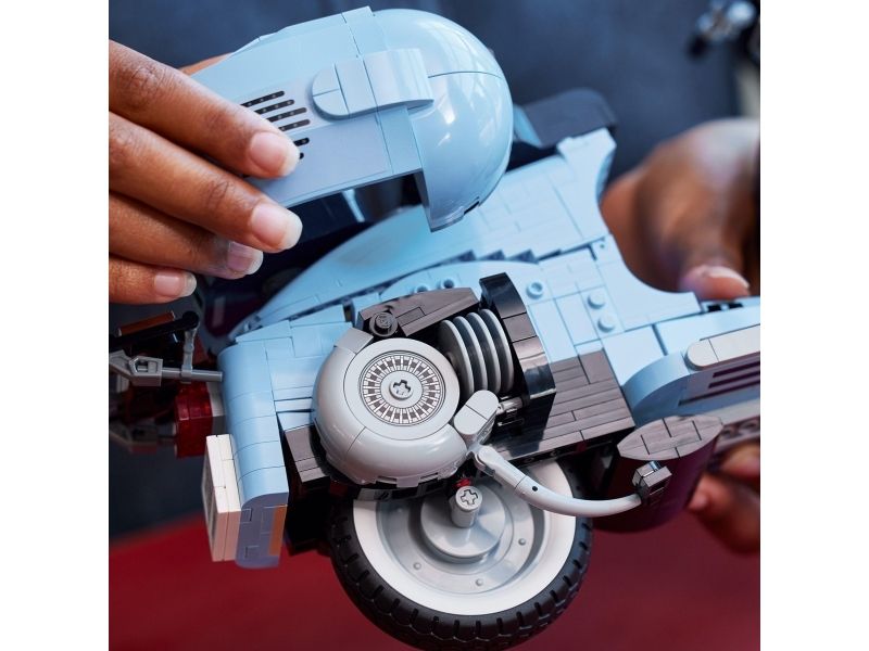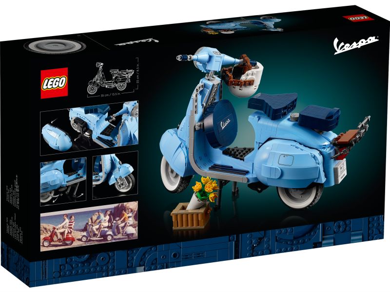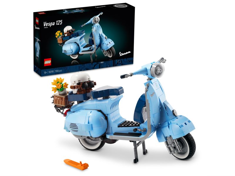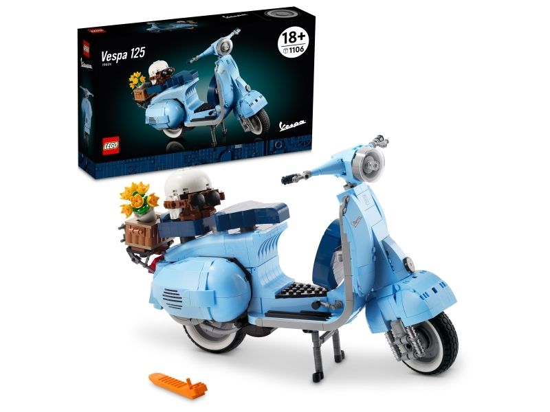 Med modellen LEGO® Vespa 125 for voksne får du et givende byggeprosjekt og en stilren modell, inspirert av sekstitallsklassikeren Vespa Piaggio. Scooteren er lyseblå – en svært sjelden LEGO farge som garantert vil falle i smak hos byggeentusiaster. For å feire Vespaens 75-årsjubileum har våre LEGO designere samarbeidet tett med scooterprodusenten for å skape denne iøynefallende modellen i et sett som er designet spesielt for voksne.