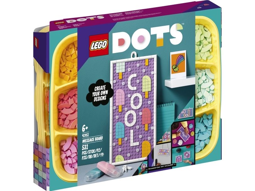 1. Vis andre hvem du er – gi kunstneriske barn muligheten til å uttrykke seg med settet LEGO® DOTS Meldingstavle (41951). Den kreative leken starter med en gang brettet åpnes